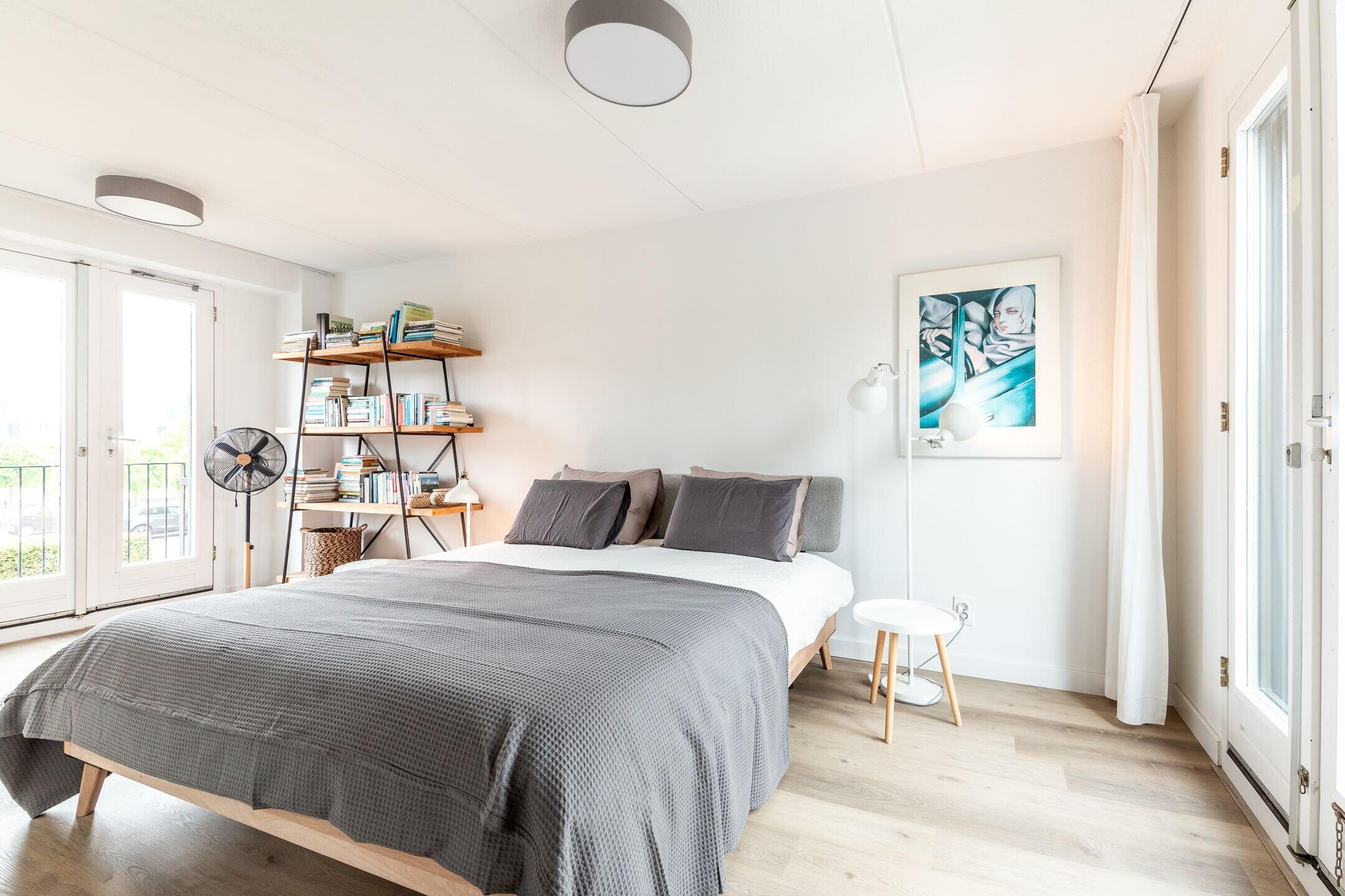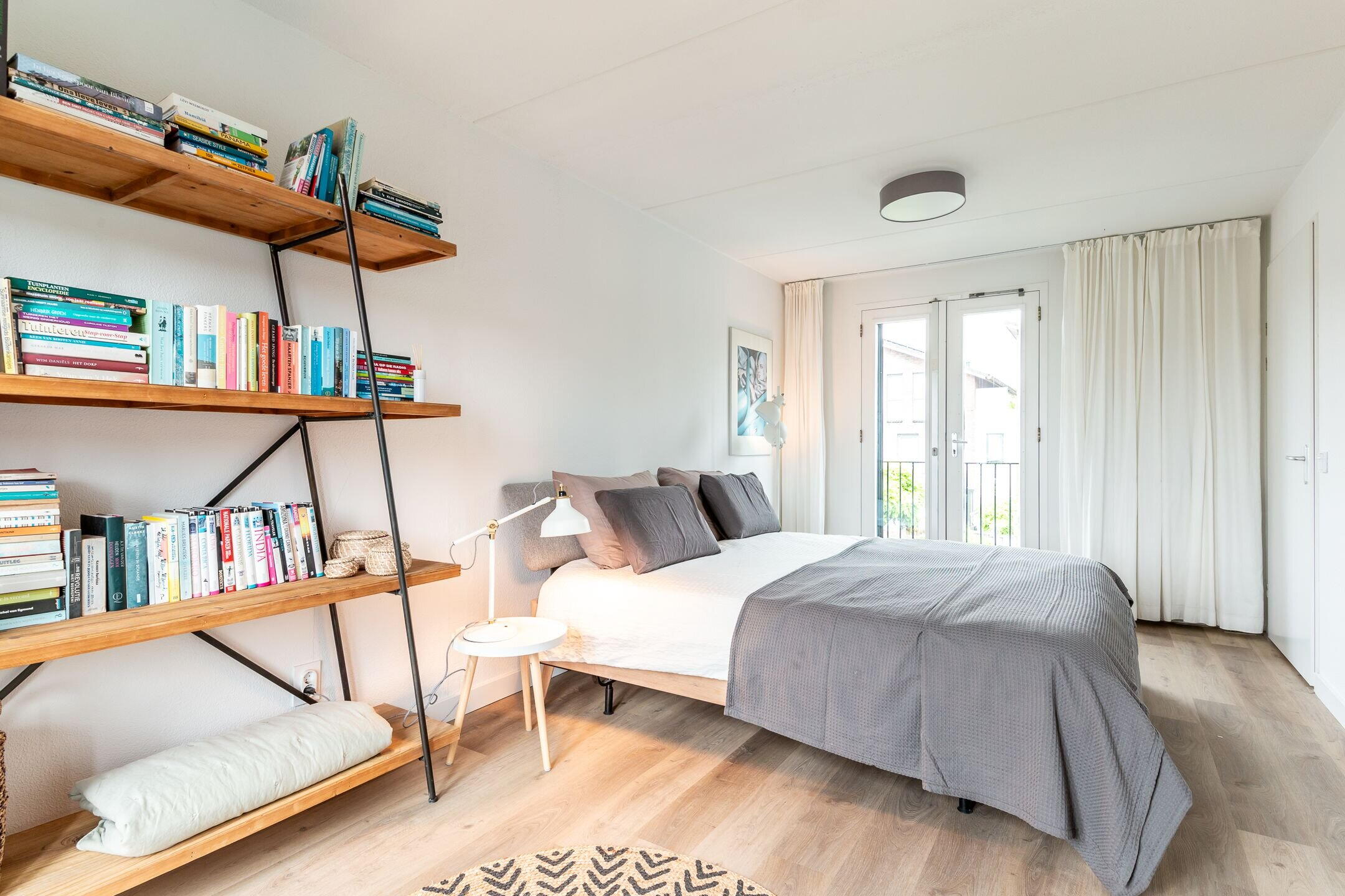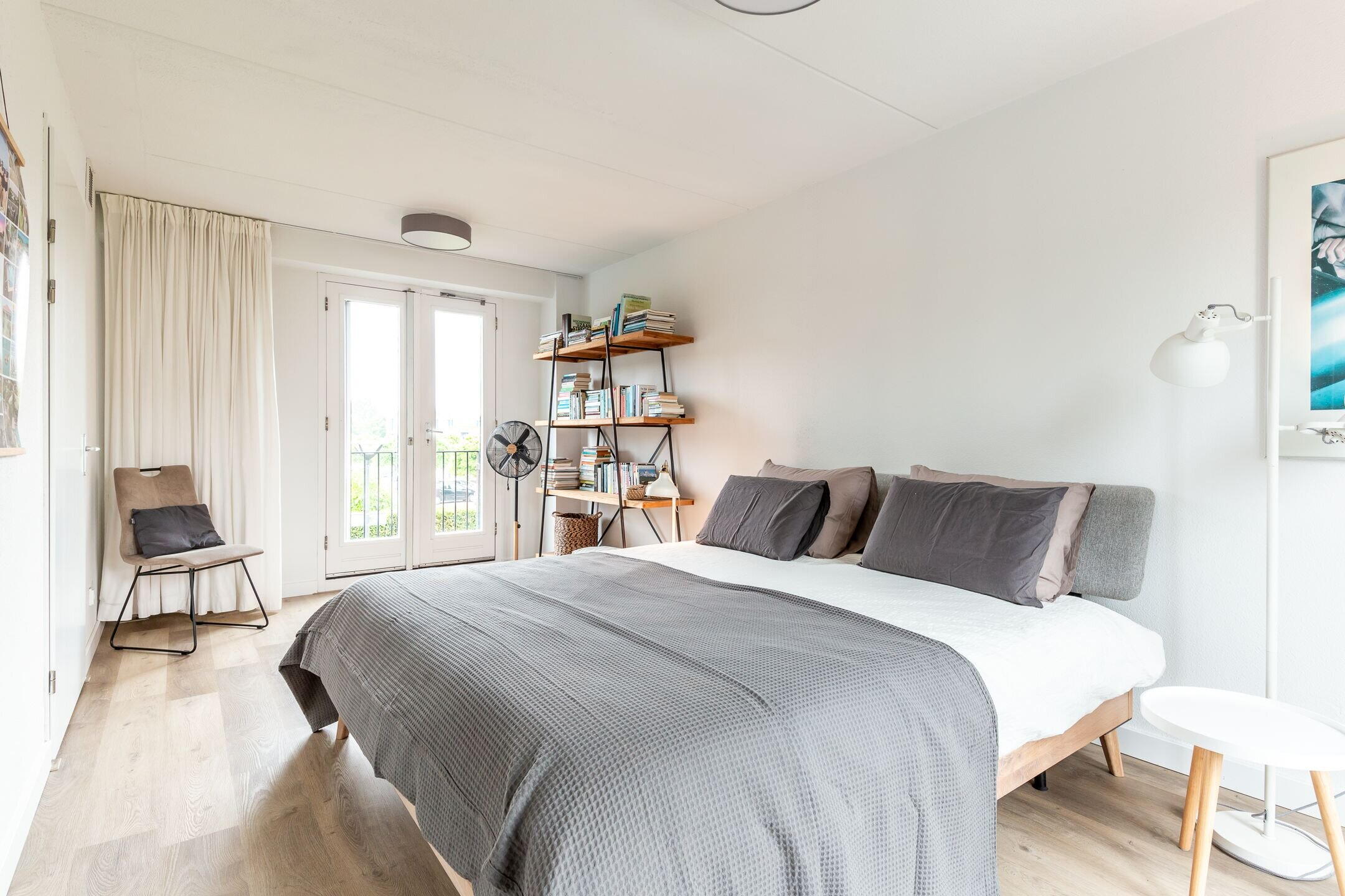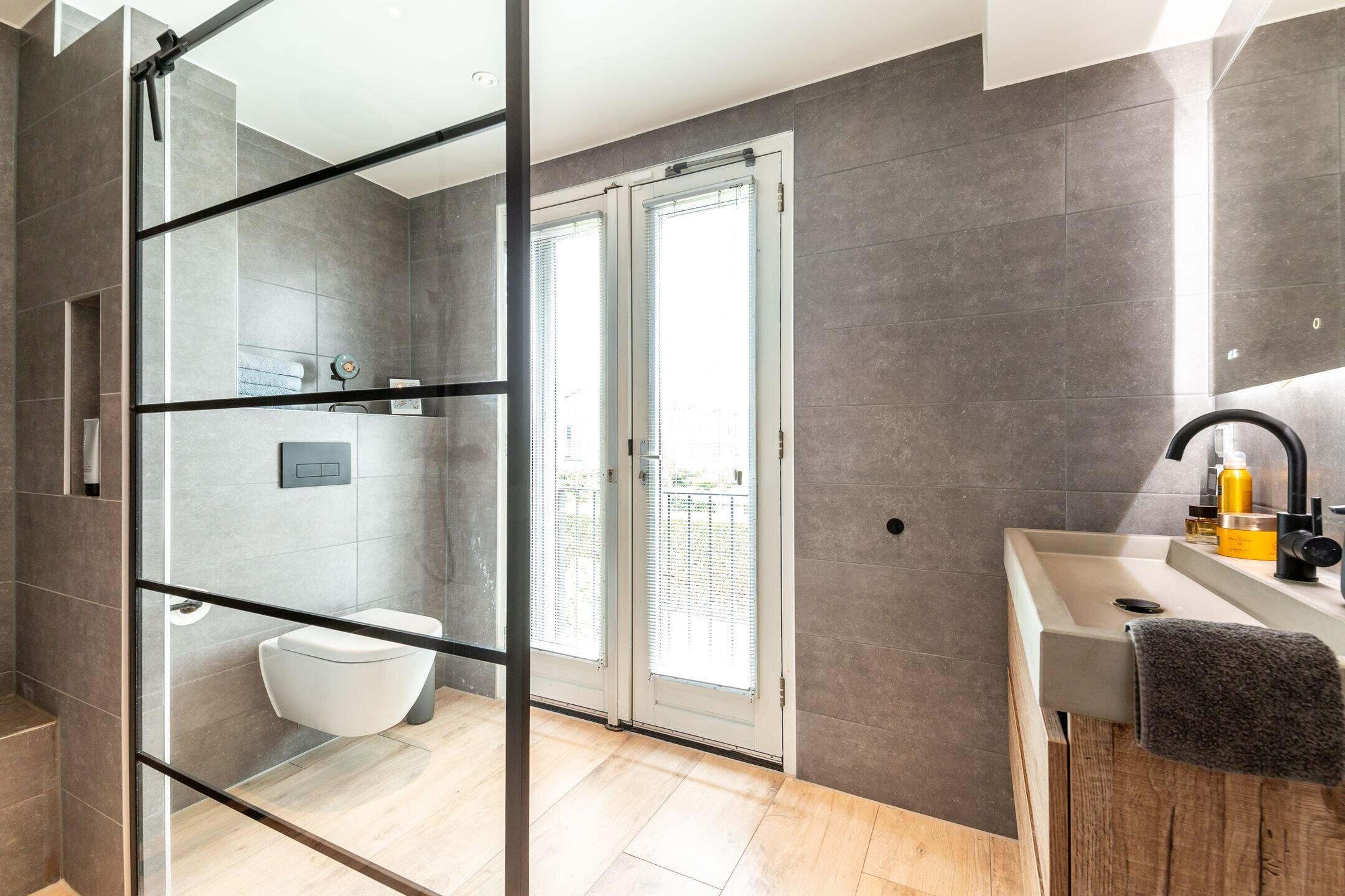 Eerste verdieping: Flinke overloop met een separate (berg)ruimte; twee slaapkamers (respectievelijk 10,3 en 17,4m²), waarvan de grootste is voorzien van twee zogenaamde Franse Balkons en de tweede slaapkamer van één Frans- en één volwaardig balkon; moderne, volledig betegelde badkamer (2022) met vloerverwarming welke is ingericht met een separate inloop douchehoek, wastafelmeubel, tweede toilet (vrijhangend), een designradiator en ook hier weer een Frans Balkon. Deze verdieping is volledig voorzien van een in moderne kleurstelling uitgevoerde laminaatvloer.