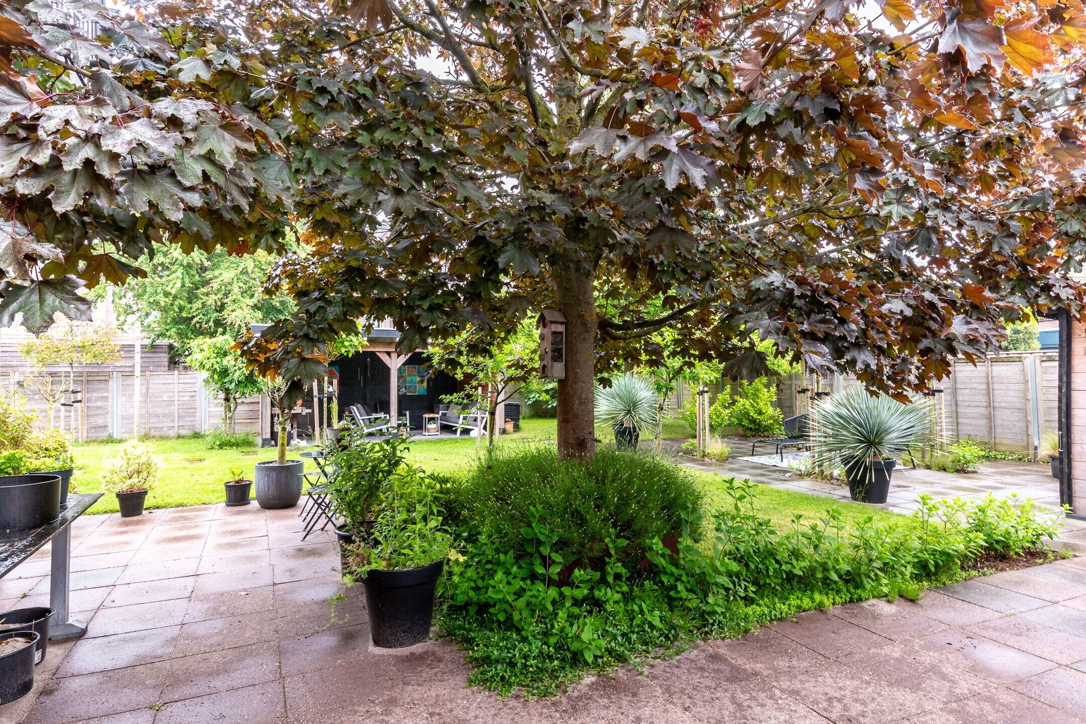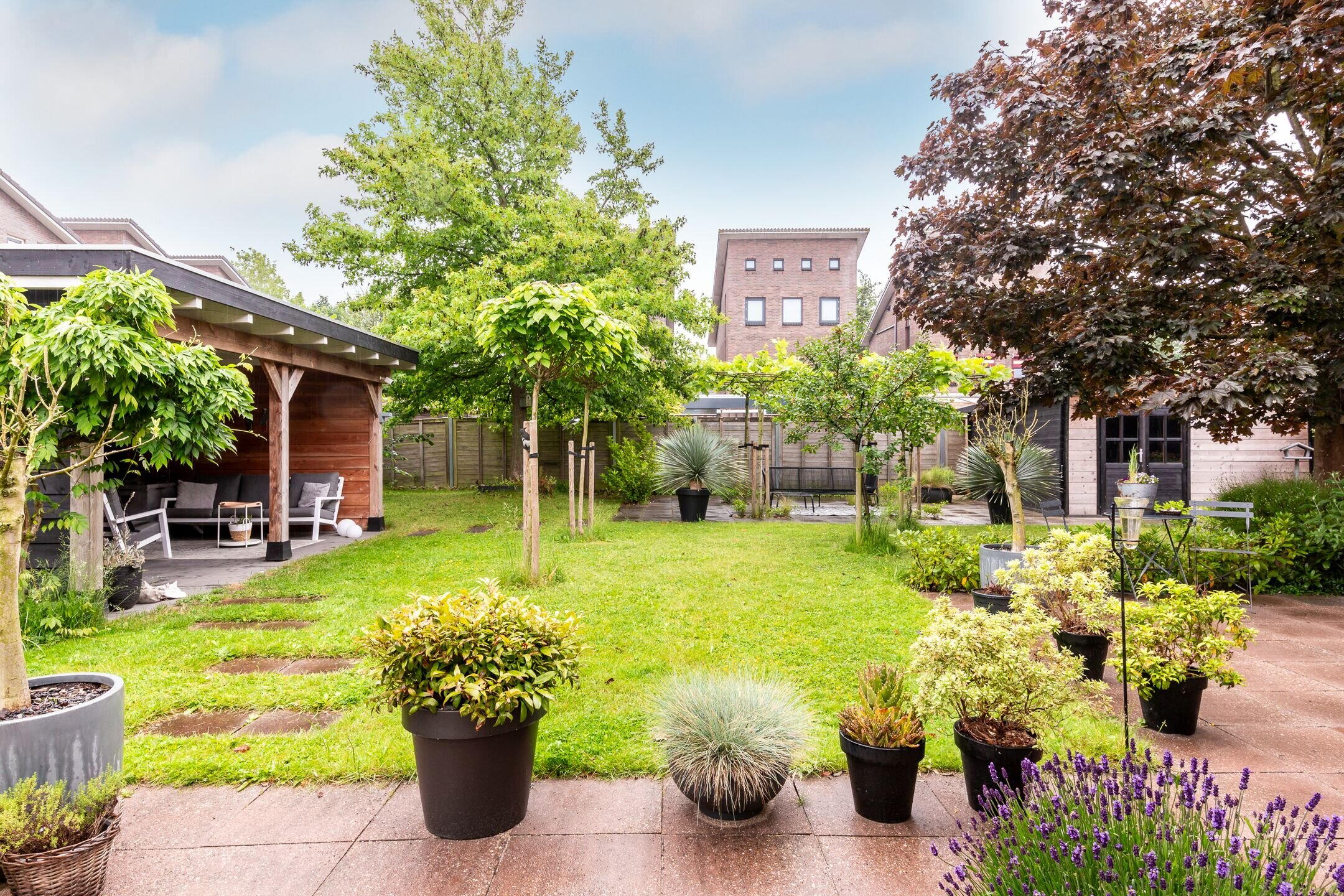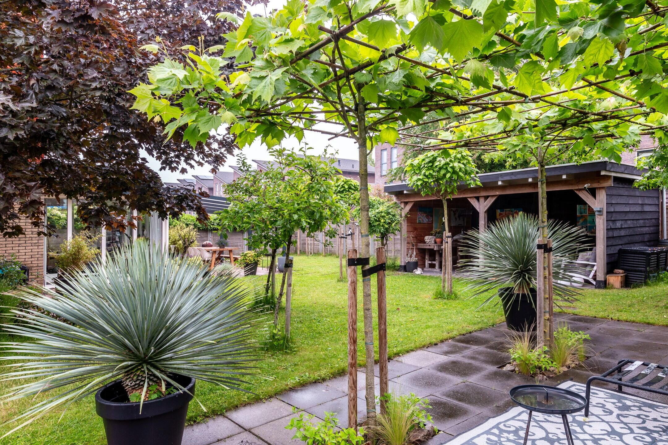 • Heerlijke zeer riante tuin rondom beschikt over meerdere parkeerplaatsen op eigen grond, een fraaie houten overkapping (geplaatst ca. 2013) en een separate houten schuur/berging